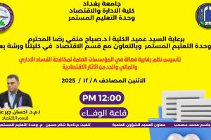 النشاطات العلمية لكلية الأدارة والاقتصاد المتمثلة بالندوات وورش العمل والحلقات النقاشية لأساتذة الكلية اضافة الى مناقشات طلبة الدراسات العليا.
