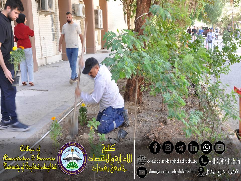 برعاية الأستاذ الدكتور صباح منفي رضا عميد الكلية، وبمشاركة الأستاذ الدكتور صفاء أحمد معاون العميد للشؤون الإدارية، نظّمت وحدة شؤون المرأة حملة تشجير واسعة شملت حدائق وأروقة الكلية، بإشراف الدكتورة سُهى جمال مولود مسؤولة الوحدة، وذلك تزامناً مع انطلاق الخطة الوطنية الثالثة للمرأة والأمن والسلام 2025.