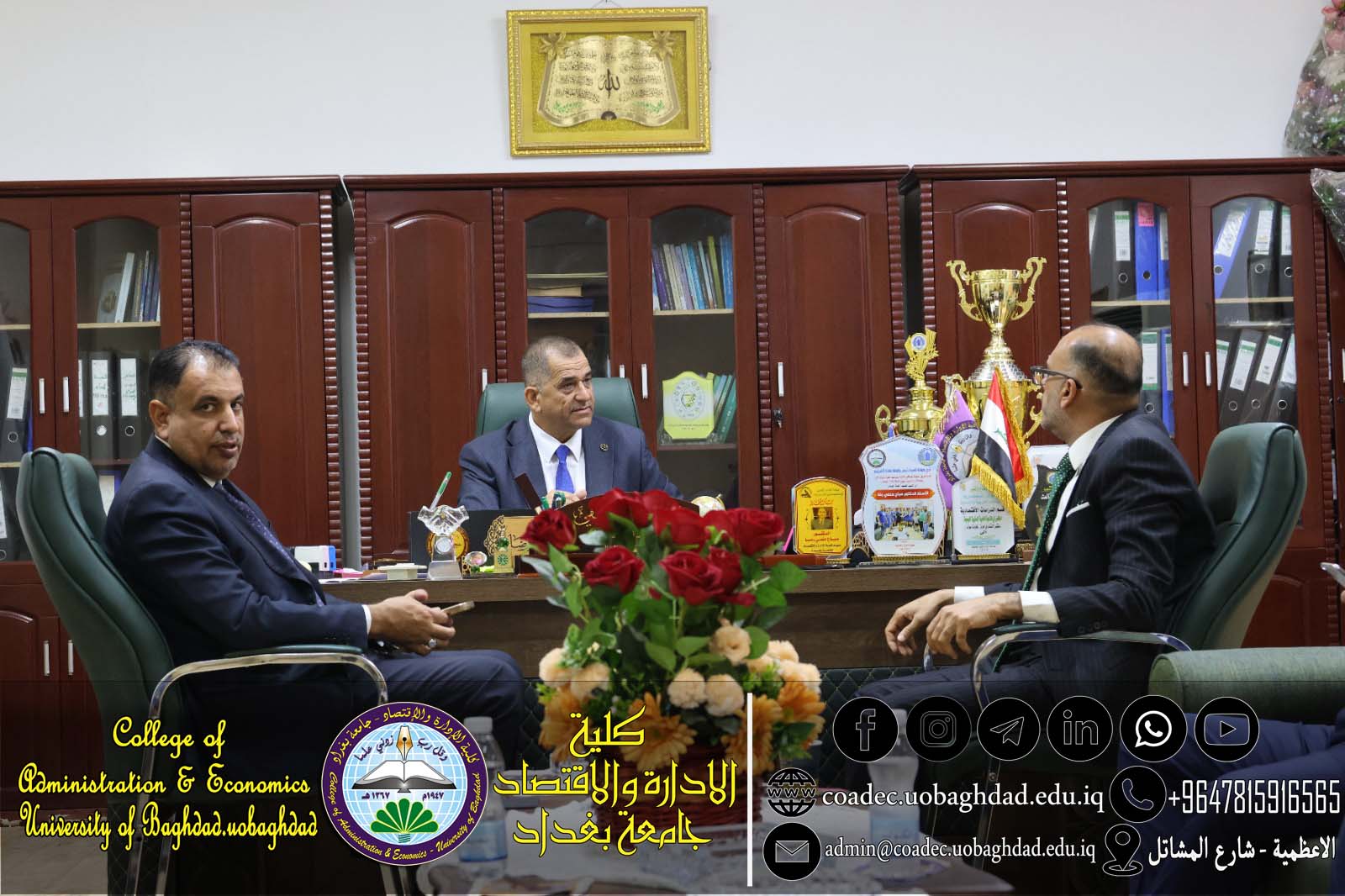 استقبل الاستاذ الدكتور صباح منفي رضا عميد الكلية وفد من قسم المتابعة بجامعة بغداد برئاسة مدير قسم المتابعة الاستاذ عصام العتابي.