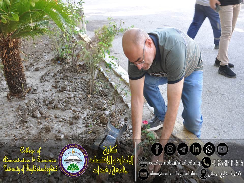 نظّم أساتذة وموظفو الكلية حملة تطوعية لزراعة وتشجير حدائق مدخل الكلية، وتهدف هذه المبادرة إلى زيادة المساحات الخضراء داخل الحرم الجامعي، وتحسين المشهد الجمالي للمكان، بما يسهم في توفير بيئة أكاديمية محفزة للإبداع والراحة النفسية للطلبة ومنتسبي الكلية على حد سواء.
