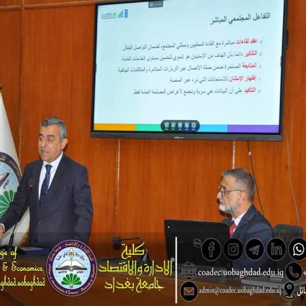 وبحضور نخبة من الخبراء وألاكاديميين وممثلي مؤسسات الدولة فضلا عن طلبة الكلية حيث يشكّل إضافة نوعية وإسهامًا مهمًا في بناء رؤية مشتركة تدعم تحقيق أهداف التنمية المستدامة في العراق.