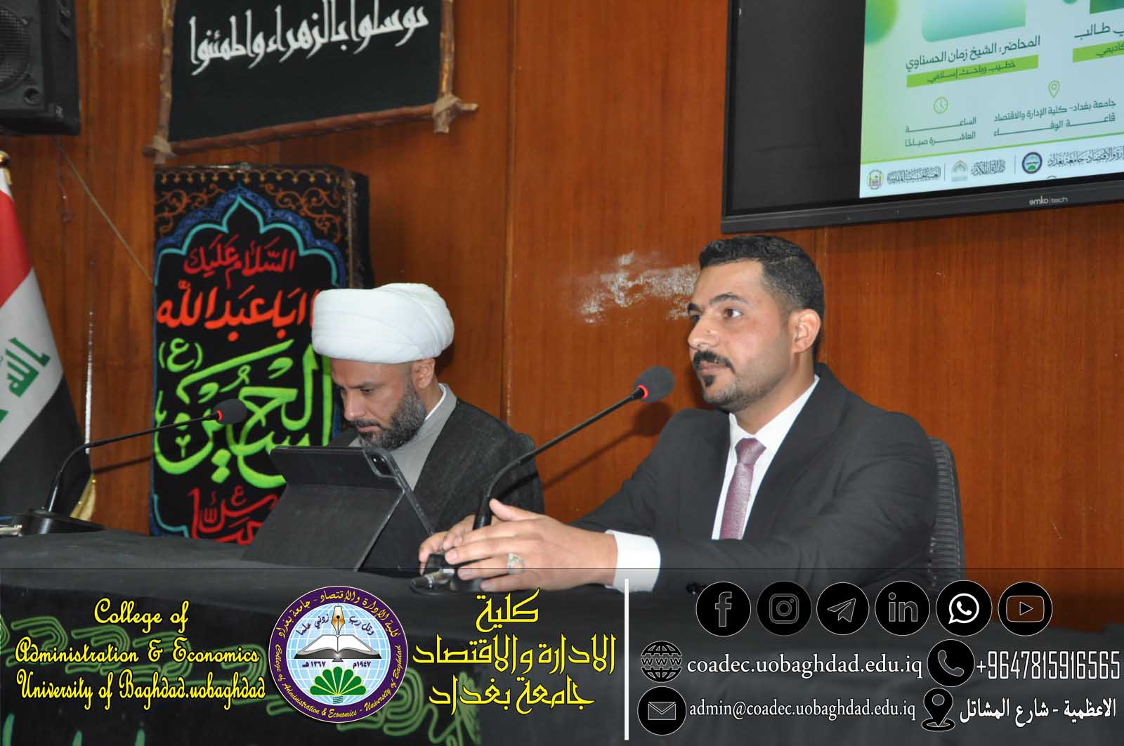 نظمت وحدة الارشاد النفسي والتوجيه التربوي في كلية الإدارة والاقتصاد بجامعة بغداد الندوة القرآنية الطلابية، والتي تأتي ضمن فعاليات المشروع القرآني في الجامعات ،قدمها الباحث الشيخ زمان الحسناوي.