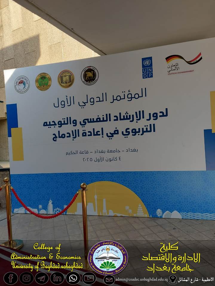 احتضنت جامعة بغداد المؤتمر الدولي الأول حول دور الإرشاد النفسي والتوجيه التربوي في إعادة الإدماج بحضور ممثلين عن رئاسة الوزراء، ومستشارية الأمن القومي، ووزارات الداخلية والتربية والتعليم العالي، إلى جانب نخبة من الباحثين والأكاديميين.