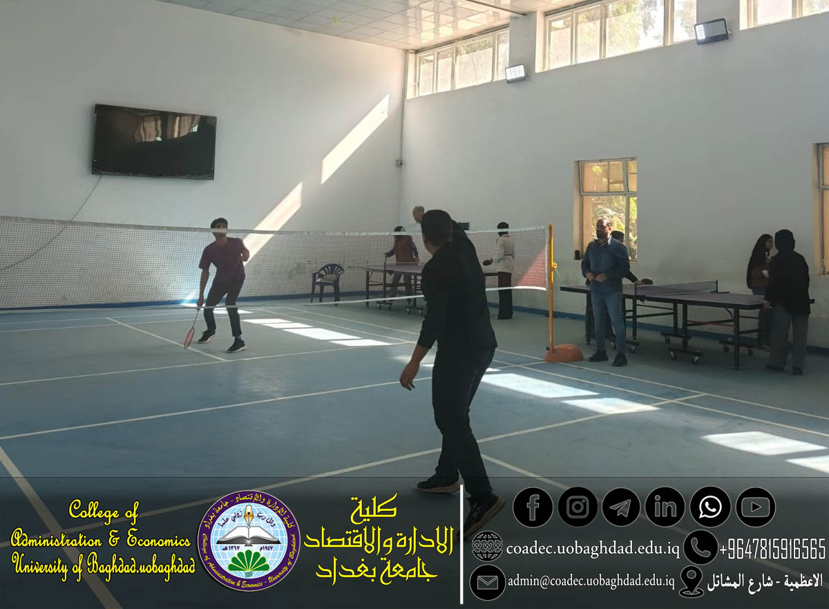 نظّمت وحدة النشاطات الرياضية في كلية الإدارة والاقتصاد بطولة داخلية في لعبة (تنس الريشة)، بمشاركة واسعة من طلبة الاقسام العلمية في الكلية.
