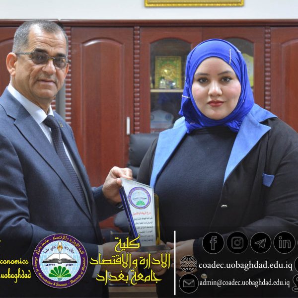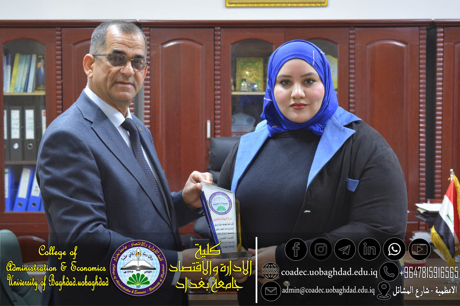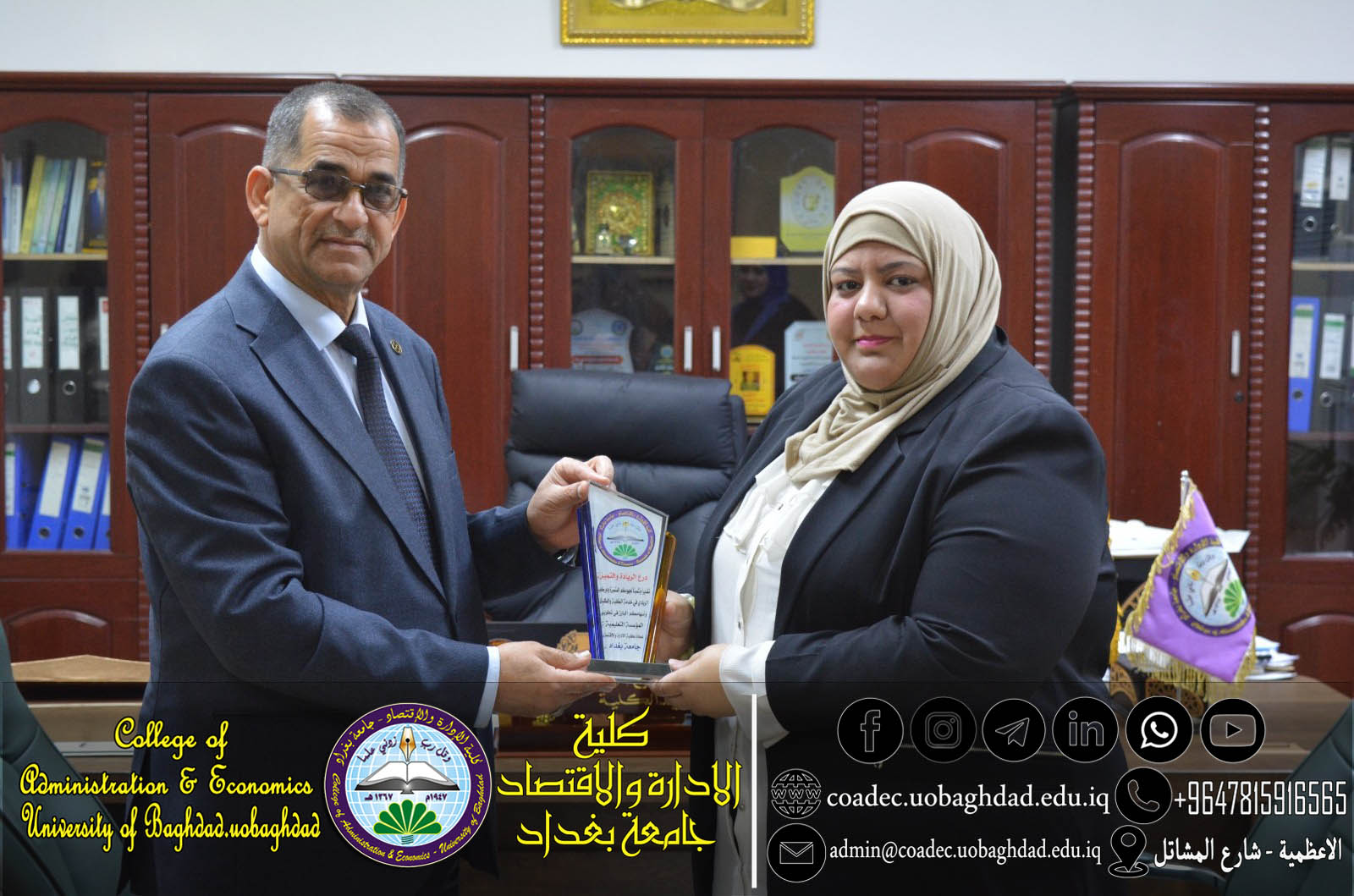 وفي ختام الجلسة، كرّم عميد الكلية الاستاذ الدكتور صباح منفي رضا الضيفتين بمنحهما درع الإبداع والتميز، إلى جانب شهادات تقديرية، تقديراً لمسيرتهما الملهمة وإسهاماتهما في تعزيز ثقافة الابتكار وريادة الأعمال.