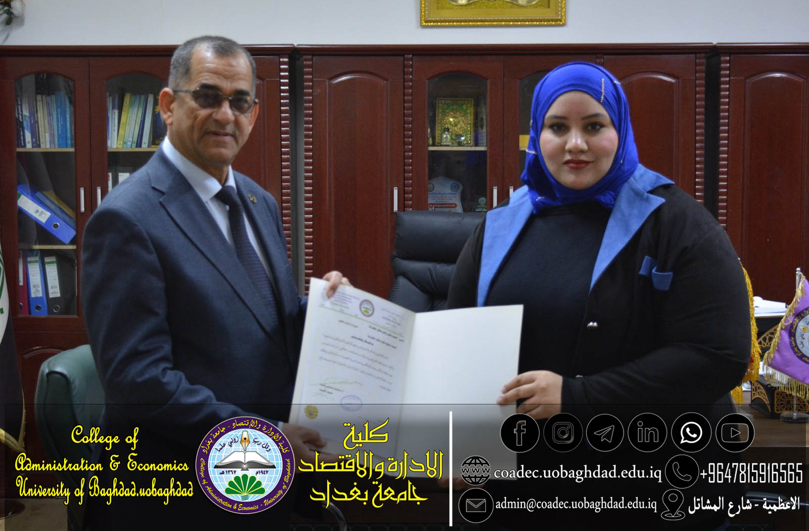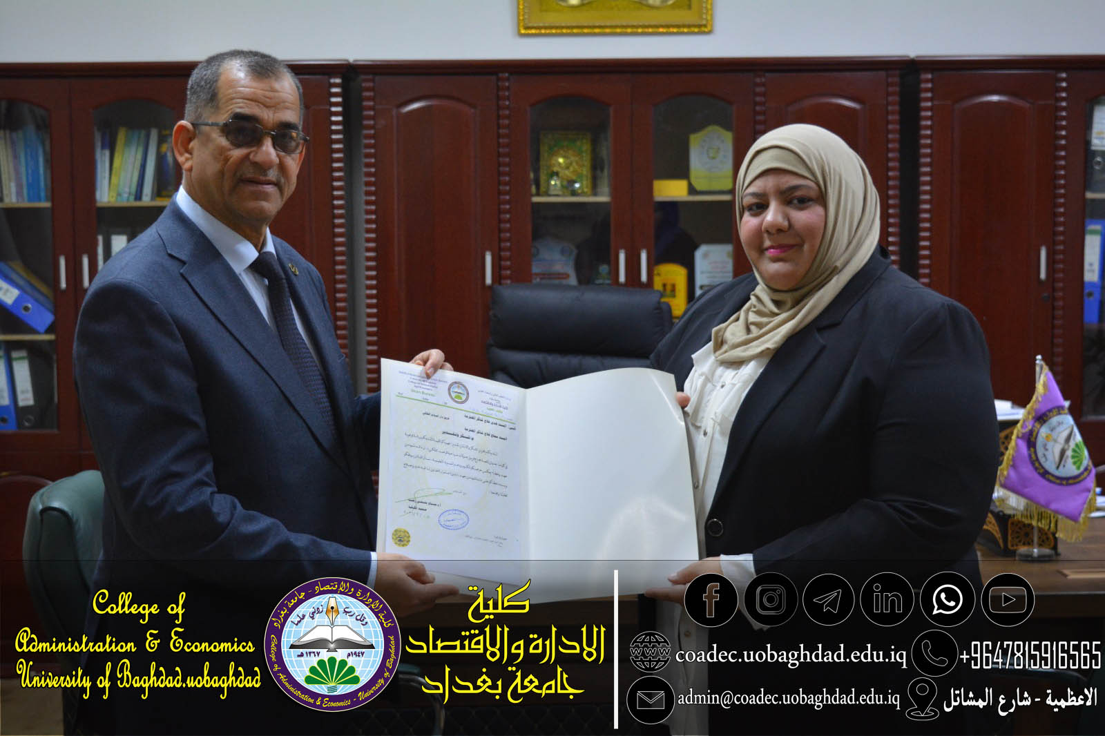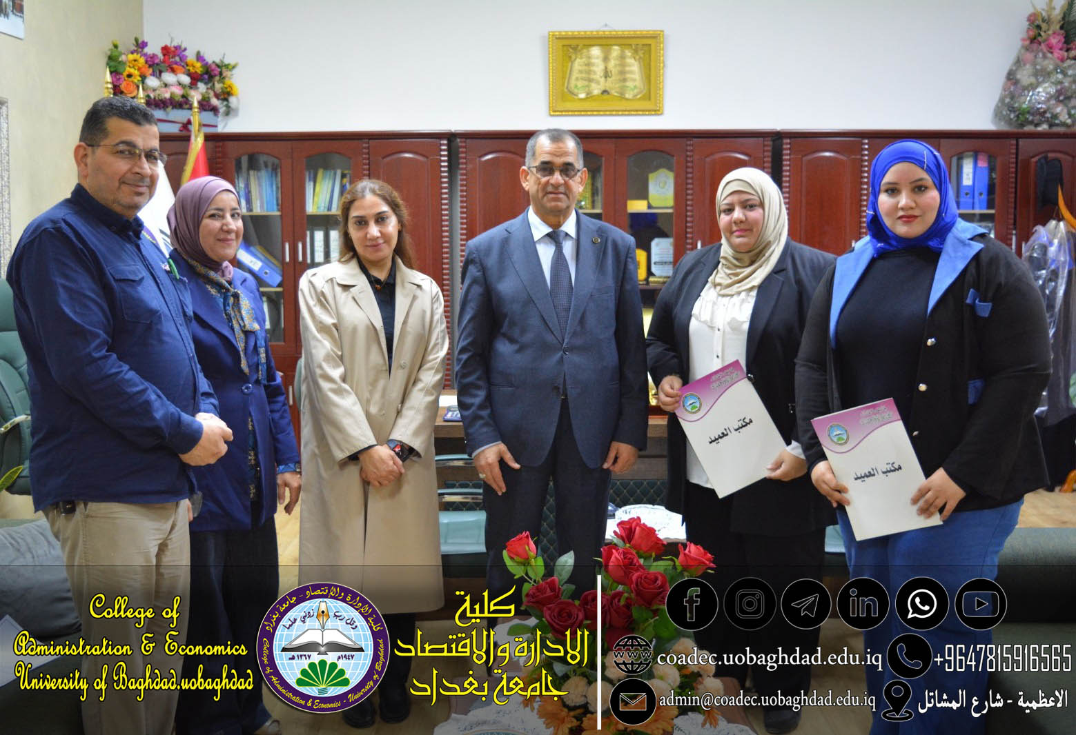 وفي ختام الجلسة، كرّم عميد الكلية الاستاذ الدكتور صباح منفي رضا الضيفتين بمنحهما درع الإبداع والتميز، إلى جانب شهادات تقديرية، تقديراً لمسيرتهما الملهمة وإسهاماتهما في تعزيز ثقافة الابتكار وريادة الأعمال.