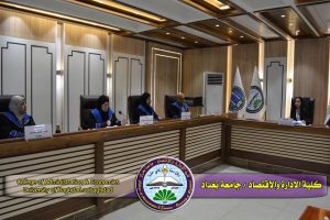مناقشة اطروحة الدكتوراه الموسومة (قياس تأثير محاسبة استهلاك الموارد في ظلّ نظام التصنيع الهجين لزيادة الإنتاجيّة وتحقيق الميزة التنافسيّة) في تخصص المحاسبة